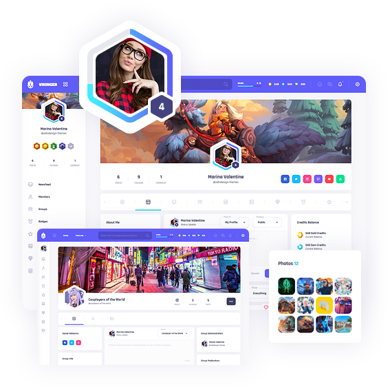 Powered by BuddyPress, the theme has super complete profile pages with a sleek design, info boxes to show things like your gamification earnings or friends, and a slider for easier access. You’ll also find other community pages, like newsfeed, members and groups directory and more!.